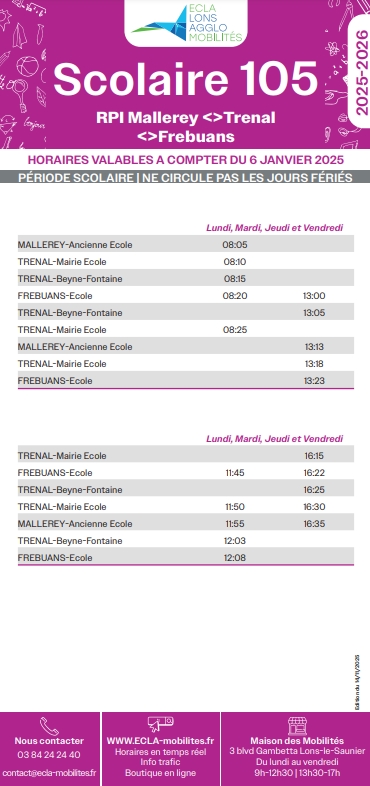 Le R.P.I (Regroupement Pédagogique Intercommunal) regroupe les communes de Trenal, Frébuans.