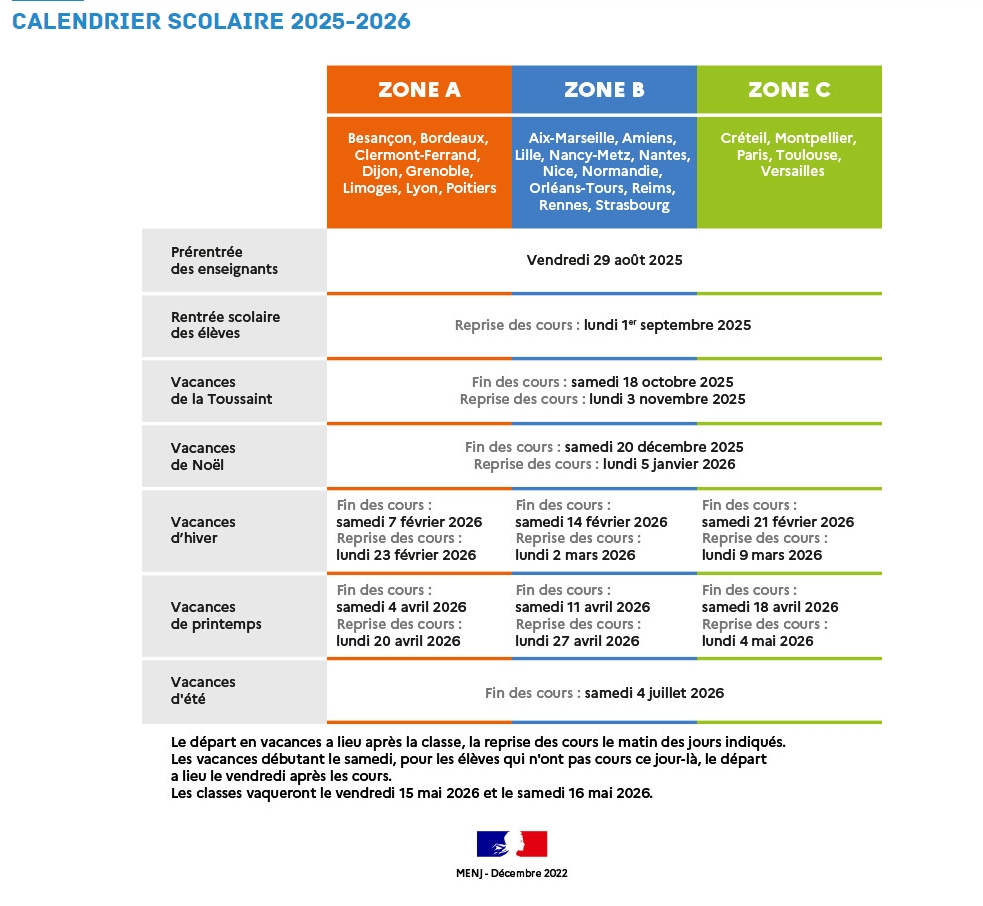 Voir ci-dessous les horaires pour le RPI pour l’année scolaire en cours